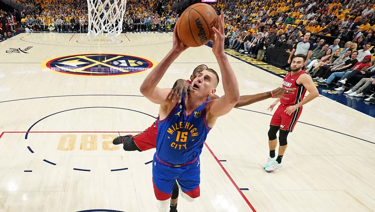 Con una actuación brillante de Nikola Jokic, Denver Nuggets se impuso anoche como local a Miami Heat, por 104 a 93, y se quedó con el primer partido de la serie final de la NBA, pactada al mejor de siete enfrentamientos.