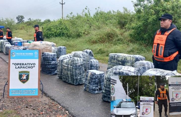 El operativo policial fue desplegado por efectivos apostados en el destacamento Río Huacra. 244 bultos contenían productos textiles y calzados de origen extranjero sin aval aduanero.