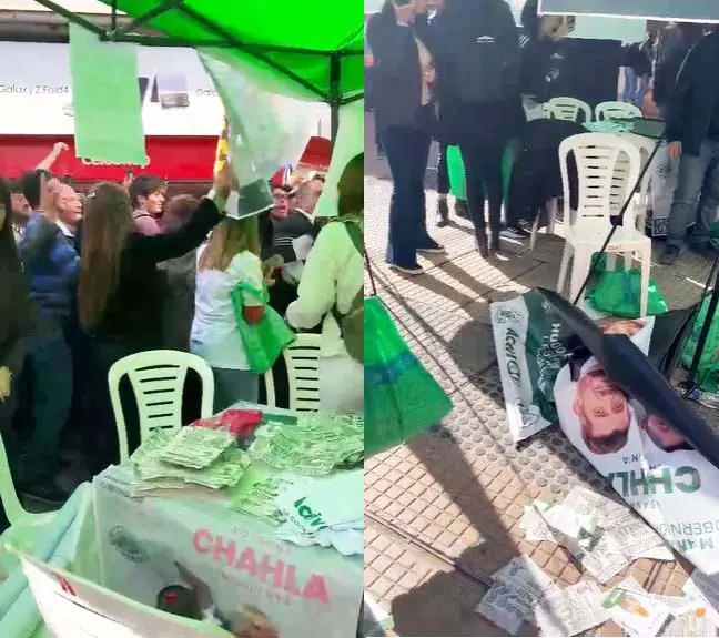 “Es verdaderamente lamentable este accionar patoteril de esta banda que destrozó un puesto en el que se repartían votos a quienes querían recibirlos en la peatonal. Es fascista y antidemocrática esta agresión de la caravana de partidarios de Milei”, cuestionó Juri.