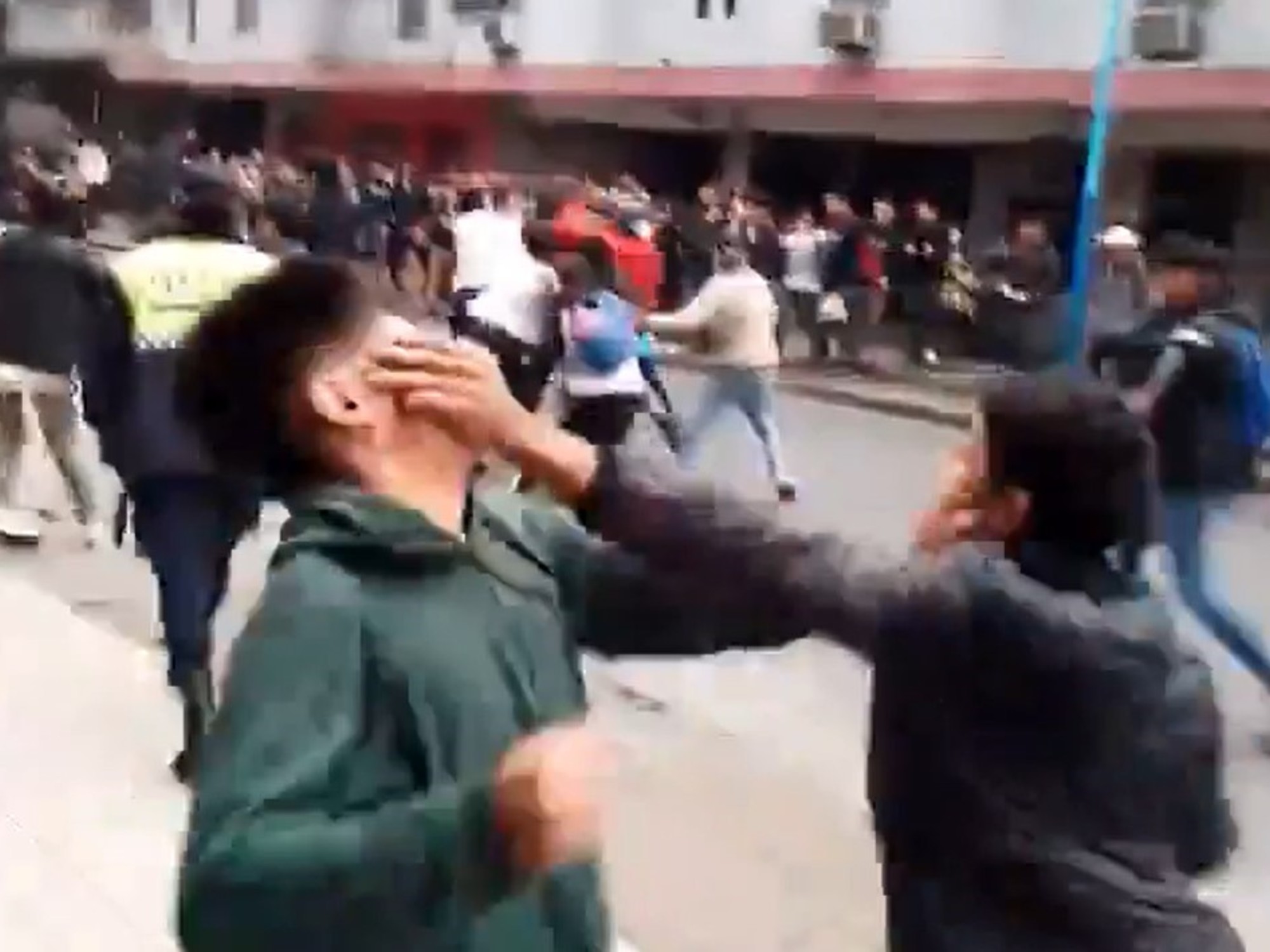 Las imágenes dan cuenta de la ferocidad del ataque, que parece ser un “todos contra todos” en el que no sólo resultaron golpeados los estudiantes, sino también los efectivos y transeúntes que se metieron a separar.