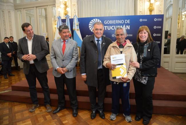 Este lunes, el gobernador Osvaldo Jaldo hizo entrega de 140 escrituras otorgadas por el Instituto Provincial de la Vivienda y Desarrollo Urbano y Escribanía de Gobierno, para beneficiarios de distintos barrios de Burruyacu, Capital, Cruz Alta, Concepción, Famaillá, La Cocha, Leales, Lules, Monteros, Tafí Viejo, Trancas y Yerba Buena.