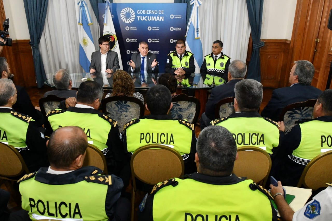 El gobernador Osvaldo Jaldo mantuvo una reunión a primera hora con el ministro de Seguridad, Eugenio Aguero Gamboa y la plana mayor de la Policía, encabezado por el jefe de la fuerza de seguridad, Joaquin Alfredo Girvau y el subjefe Roque Rodolfo Yñigo.