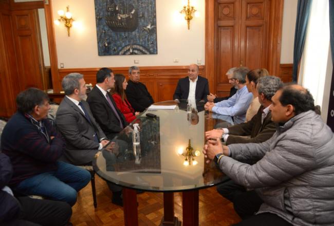 Junto a la ministra de Gobierno y Justicia, Carolina Vargas Aignasse; el subsecretario general de la Gobernación, Pedro Sandilli; y al Secretario de Transporte, Vicente Nicastro; el Primer Mandatario dialogó con el presidente y el vicepresidente de AETAT, Daniel Orell y Jorge Berreta, César González (UTA), Luis García (vocal AETAT) y Andrea Courtade (vocal AETAT).